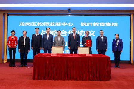 日前,深圳市龙岗区打造粤港澳国际教育示范区启动仪式顺利举行。在龙岗区委书记、区长和深圳市教育局领导的见证下,枫叶教育集团作为合作签约方之一与龙岗区教育局教师发展中心签订战略合作协议。