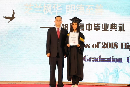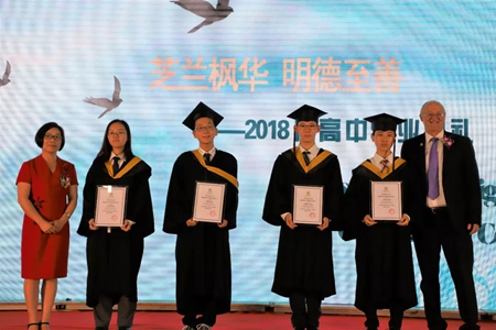 枫叶教育集团副总裁兼中方校监、上海枫叶国际学校校长陈林生宣布了枫叶教育集团和上海枫叶国际学校2018届优秀毕业生名单,并为他们颁发了奖杯和证书。徐润赟同学荣获“枫叶教育集团2018届优秀毕业生”称号,殷可青、杨家褀、张钧凯、廉晓亚同学获得上海校区2018届优秀毕业生称号。