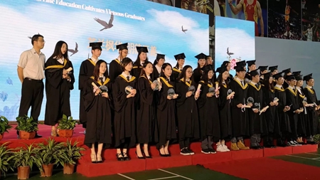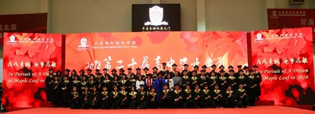 6月9日,大连枫叶国际学校高中第二十届毕业典礼在男校体育馆隆重举行。民进大连市委专职副主委兼秘书长董晶、大连市金普新区社会事业局副局长姚志强、大连市金石滩国家旅游度假区管委会社会事业局局长宋大伟、加拿大皇家大学校长艾伦·卡洪、枫叶教育创始人·董事长任书良博士、枫叶教育集团副总裁兼首席法务官范桂杰、集团副总裁兼加方校监鲍勃·加德纳、集团副总裁兼研究院院长任鸿鸽、大连枫叶国际学校高中校长兼总领事张瑞芳等领导出席典礼。