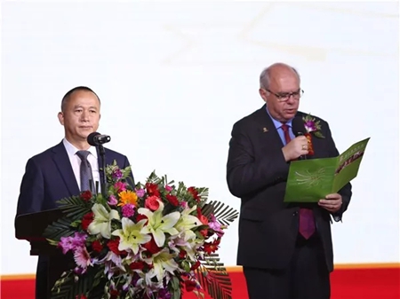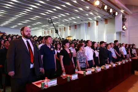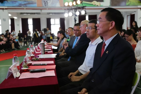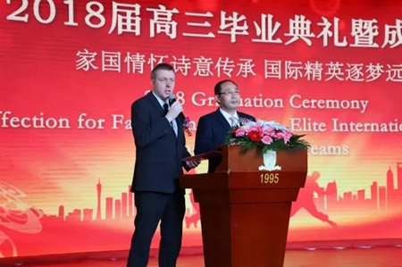 天津枫叶教育园区总校长龙永祥和加方课程校长Peter Embleton致辞,寄语学子一要懂得感恩,二要牢记“勤奋 博学 进取 争先”的枫叶校训,坚定理想,勇于挑战,三要做有责任心的世界公民,关注世界进步和人类发展。