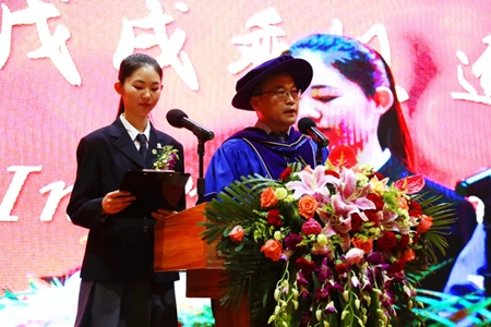 枫叶教育创始人·董事长任书良博士致辞,宣读了枫叶教育集团2018届毕业生录取情况,并在毕业生临行之际,对全体枫叶毕业生寄予厚望,希望枫叶学子能够学有所成、前程似锦。