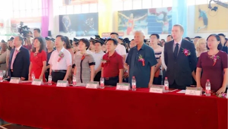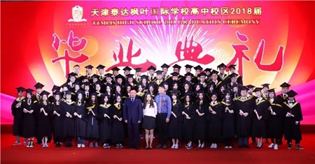 6月9日,天津泰达枫叶国际学校隆重举行2018届高中毕业典礼。滨海新区教体委主任刘明成、泰达街文教办主任李洪波、中新生态城司法局局长彭正阳、开发区市场管理局局长郭卫东、中新生态城社会局副局长李鑫、国培星教育京津冀总经理董文正等领导嘉宾、中加方教师、学生家长以及新浪网、腾讯网、凤凰网、天津日报、微天津、滨海时报、滨海视窗、滨海学生等媒体,共1000多人参加典礼,一起为即将走出国门的学子助力。