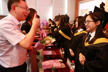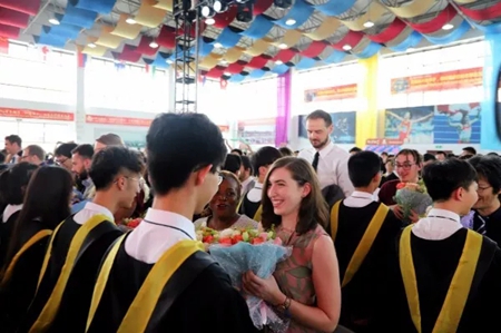 武汉枫叶教育园区总校长朱奇和加方课程校长Mr.Rogers代表园区四千多名师生对毕业生和家长们表示热烈的祝贺,寄语全体高三学子“从高一开始,你们就一直在往前大步走。沿途你们获得了技能、知识和经验,现在你们已经准备好奔赴下一个目的地。我们鼓励你们去世界的舞台感受新的环境。这将丰富你们的人生体验,帮助你们成为具有文化融合能力的国际精英人才。你们是属于中国,也属于世界,你们是中华文化的使者,也是世界先进文化的形象大使。”